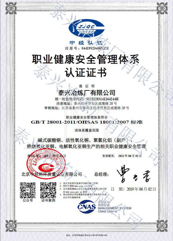 泰興冶煉廠有限公司(原泰興冶煉廠),始建于20世紀70年代初,現(xiàn)位于江蘇省泰興經(jīng)濟開發(fā)區(qū)。歷經(jīng)40年的創(chuàng)新驅(qū)動、穩(wěn)健發(fā)展,已成長為一家專業(yè)生產(chǎn)堿式碳酸銅、高純電鍍氧化銅、氧化亞銅、氧化銅、無水硫酸銅、海綿銅粉及副產(chǎn)品聚氯化鋁(凈水劑)等系列無機鹽產(chǎn)品及處置不含氨的氯化銅蝕刻液(HW22)15000噸/年的“國家高新技術(shù)企業(yè)”和地方性骨干企業(yè)。公司總占地面積3.7萬平方米,建筑面積4萬平方米,注冊資本2088萬元,固定資產(chǎn)1.2億元,年產(chǎn)值約7億元。